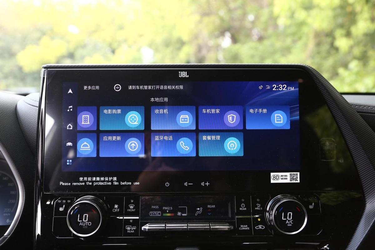 進入到車內,豐田皇冠陸放的內飾還是沿用了豐田經典的設計布局,車內保留有常用功能的實體按鍵,操作起來也很方便。三輻式多功能方向盤的正前方采用了一塊12.3英寸全液晶儀表盤,并且還配備有HUD抬頭顯示系統,而中間的12.3英寸觸摸式中控大屏支持4G網絡、OTA升級、面部識別、語音控制等功能,車機系統使用起來也很流暢。值得一提的是,皇冠陸放的內飾部分采用了大面積軟性材質和皮質包裹,烘托出一定的豪華感。