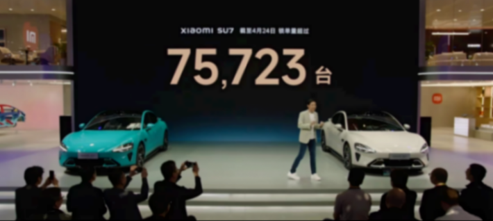 在2024年北京車展上,小米作為總部和汽車工廠都在北京本土的企業,也是小米自2021年宣布造車后的第三個年頭,小米首次帶著自己的產品參加車展,盡管目前小米只有SU7一款產品,但由于其配色較多,在展臺中也有足夠的看頭,開展第一天,小米汽車的展臺就已人山人海。雷軍在北京車展的演講會上表示,截止至4月24日,小米SU7的鎖單量已經超過75723輛。