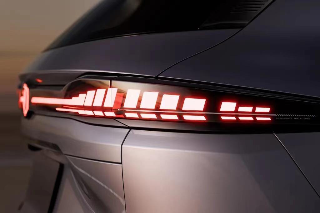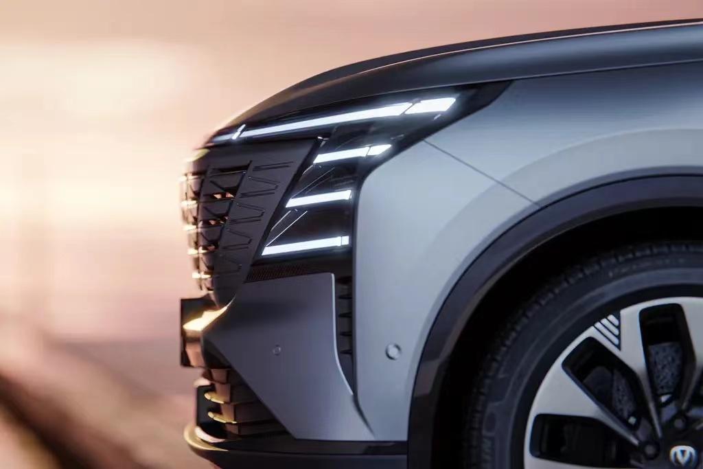 從得到的官圖來看,全新長安CS75 PLUS前臉繼續采用無邊框式進氣格柵,但格柵內部換成了帶折線的全新結構進行填充,并輔以點陣式鍍鉻元素來點綴。大燈組也有所調整,格柵上方是一條貫穿式燈帶,長安LOGO還可進行點亮,兩側各加入三條額外的燈帶,并將遠近光燈融入其中,點亮以后的視覺效果頗為醒目。