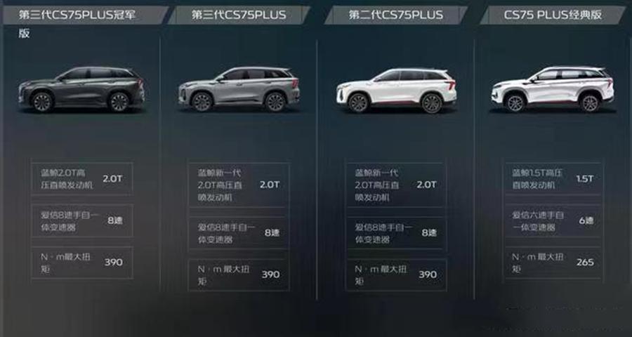 目前長安CS75 PLUS采用經典版、第二代、第三代和第三代冠軍版同堂銷售的方式,從而滿足不同消費者的審美需求,從外觀內飾設計來看,放在當下并不算過時。不過,可能是長安出于對自身設計的自信,畢竟旗下車型的顏值都比較能打,亦或者是為了應對全新哈弗H6,于是才準備推出全新一代CS75 PLUS。