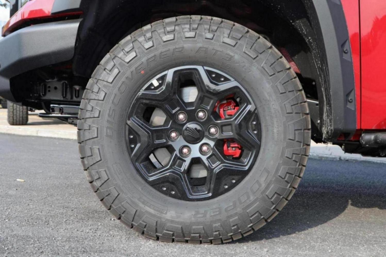 敢探者全系均采用了分時四驅的驅動形式,標配了后橋差速鎖,并支持選裝前橋差速鎖,同時在懸掛類型上,該車采用的是前雙叉臂式獨立懸掛,后多連桿式非獨立懸掛,尤其說一下它的后懸掛,采用了皮卡車型中很少見的多連桿+瓦特連桿的組合,可以有效減少坑洼路面對車車內的沖擊,帶來更好的舒適性和底盤行駛質感。