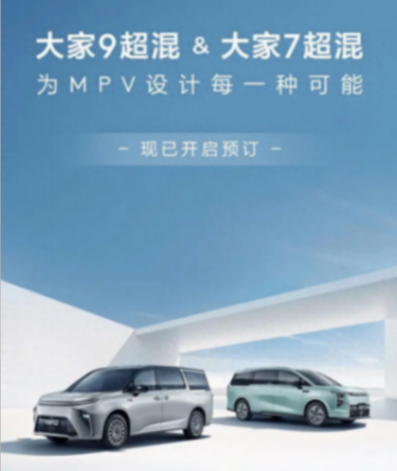 上汽大通宣布,旗下兩款MPV車型——大家9超混與大家7超混,將于6月7日正式上市。目前,這兩款車型已經開啟預定。