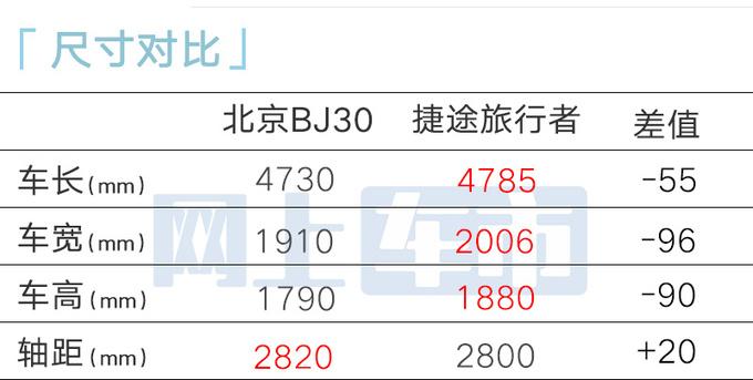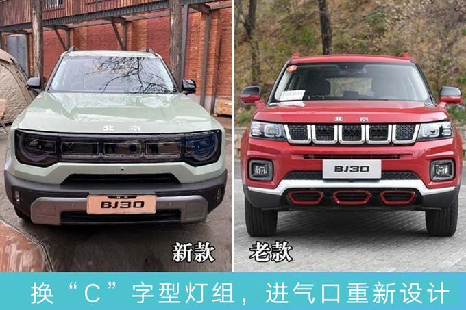 新BJ30軸距比捷途旅行者更大,前臉采用經(jīng)典的三孔樣式格柵,格柵內(nèi)配有間斷式LED燈組,兩側(cè)大燈組內(nèi)部半圓形LED日間行車燈與之相連形成貫穿式的設(shè)計(jì)。車側(cè)配備傳統(tǒng)門把手、固定側(cè)踏板,車頂采用懸浮式設(shè)計(jì),搭載行李架。車尾搭載分體式尾燈,牌照架移至后保險杠中部。
