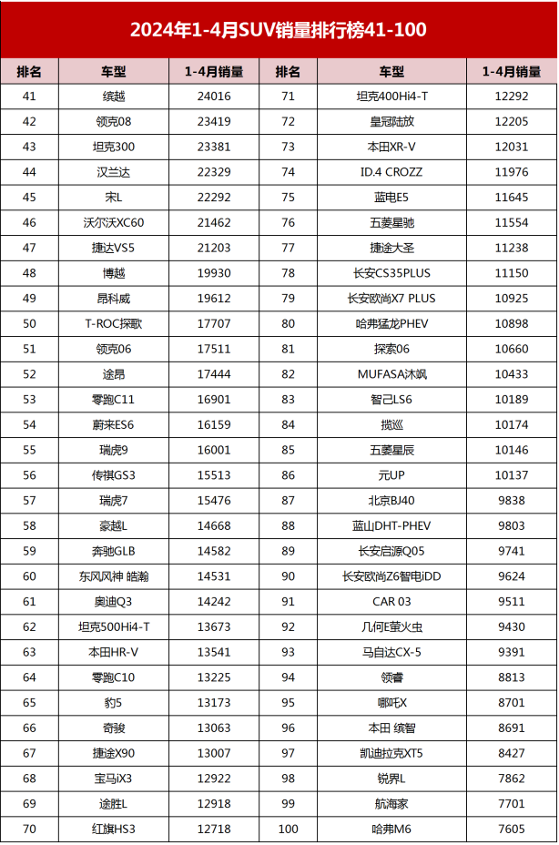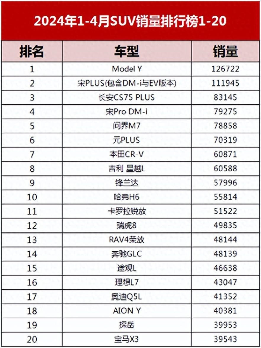 首頁 > 蘋果手機(jī) > 1-4月SUV銷量榜確認(rèn),比亞迪降價(jià)也賣不過特斯拉,日系排不進(jìn)前6