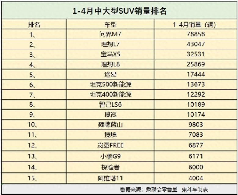 途昂排名第五位,1-4月份,該車型零售銷量達(dá)到17444輛,這款德系SUV的特點(diǎn)是耐用又可靠,喜歡途昂的消費(fèi)者也不少。坦克500 新能源排名第六位,該車型1-4月份零售銷量達(dá)到13673輛,越野性能出眾是這款SUV的一大亮點(diǎn)。