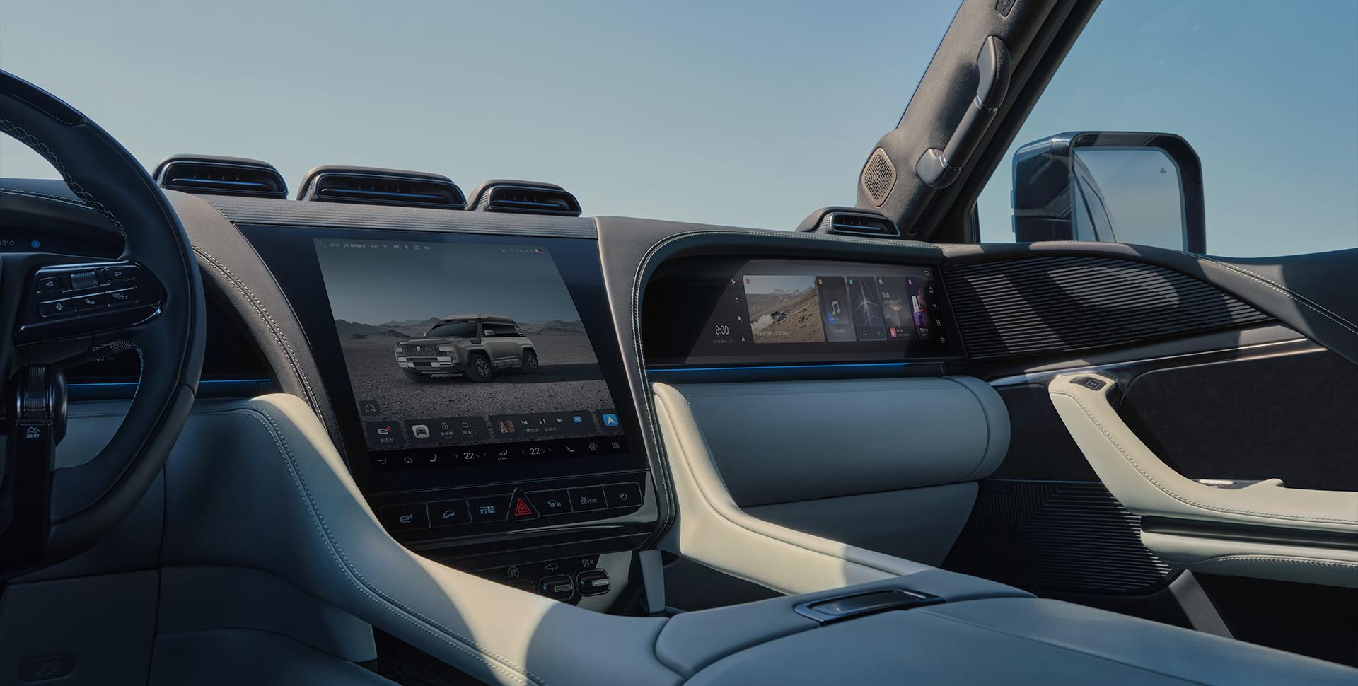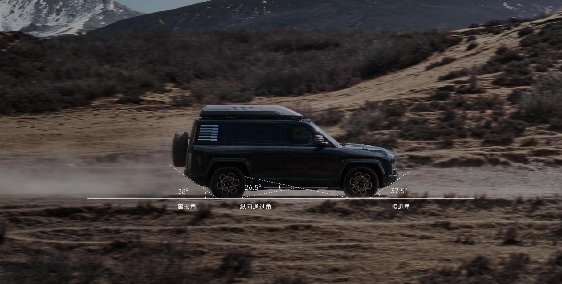 新車采用非承載式車身,配備雙叉臂式獨(dú)立懸架以及云輦-P智能液壓車身控制系統(tǒng),擁有37.5°接近角、38°離去角、26.5°縱向通過角、310毫米最小離地間隙以及車身高度調(diào)節(jié)行程150毫米。此外新車還配備了牙嵌式差速鎖(含前差速鎖和后差速鎖)、涉水感應(yīng)系統(tǒng)、陡坡緩降系統(tǒng)、涉水喉、夜視系統(tǒng)、車載衛(wèi)星通信等越野裝備,并且擁有多達(dá)17+1種越野模式,包含12種駕駛模式(經(jīng)濟(jì)、舒適、運(yùn)動(dòng)、雪地、沙地、泥地、山地/巖石、涉水、競(jìng)速、極限續(xù)航、玩家、自定義)和5種功能(原地轉(zhuǎn)向、蠕行功能、帶拖車行駛模式、防滑鏈功能、應(yīng)急浮水)+自適應(yīng)反饋系統(tǒng),能夠應(yīng)對(duì)各種復(fù)雜的越野路況。