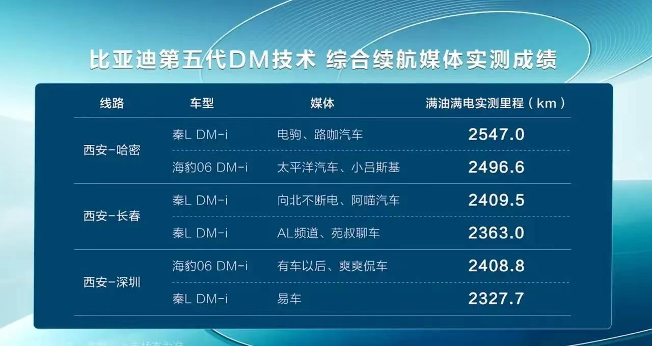 回過頭來說,比亞迪官宣的2100公里到底靠譜嗎?我覺得比亞迪應該不會打無準備之仗,更何況在上市前,還邀請媒體進行了多條路線,多種路況的測試,最多的有跑2500多公里,比官宣的還多了400多公里,甚至媒體人還發布了挑戰,邀請其他車輛來參與和秦L的挑戰。