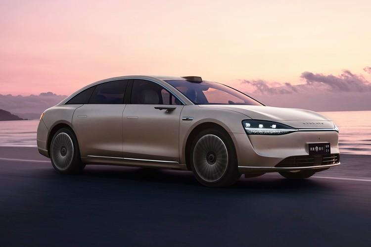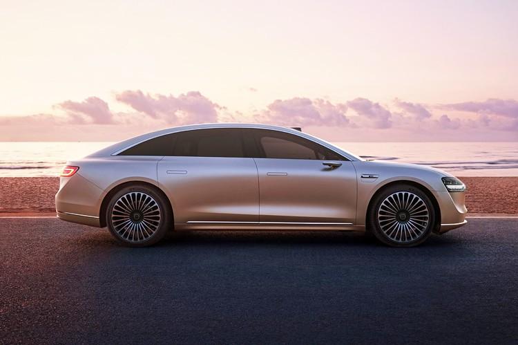 新車的側面線條流暢銳利,21英寸的大尺寸密輻輪圈為整車帶來了不錯的穩重感。另外,新車還配備了電子后視鏡、隱藏門把手、激光雷達等。車身尺寸上,新車的長、寬、高分別為5160/1987/1486(mm),軸距為3050mm。