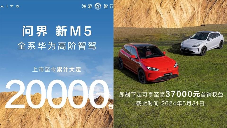 雖然,問界的5月銷量沒有單獨公布,但這可以拆解。問界M9的5月交付量為15873輛,賽力斯為34130輛,也就是說藍電E5等賽力斯自己的車即便銷量為0,問界M7也拿不到2萬輛的數字。因為新問界M5在5月15日正式開啟交付,官方銷量成績是,72小時大定突破1萬臺,目前大定突破2萬臺。