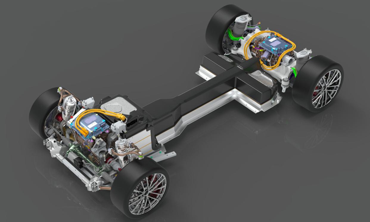在電池的布局上,為了保證純粹的駕駛愉悅感,傳統(tǒng)的底盤電池布置方式被放棄,而是采用了T字形,也就是電池被布置在了中央通道周圍。這一舉措不僅大幅降低了H點(diǎn)(可簡(jiǎn)單理解為坐在車上胯骨那個(gè)點(diǎn))的位置,也有效的將車輛的高度降低到了1353mm,比保時(shí)捷Taycan更低。這樣一來(lái),車輛的主要質(zhì)量轉(zhuǎn)移到了滾動(dòng)軸附近,降低了整車的慣性系數(shù),提高了機(jī)動(dòng)性和靈活性,使駕駛感受更加愉悅,當(dāng)然也保留了更為純粹的跑車坐姿。