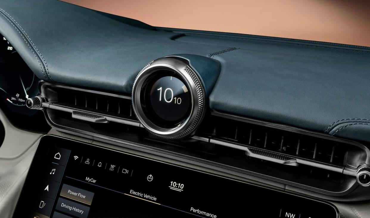 中控臺(tái)上方的圓形數(shù)字時(shí)鐘已成為瑪莎拉蒂的新特色,除了可以切換三種皮膚,還具備指南針、重力計(jì)、加速器和秒表四種動(dòng)態(tài)動(dòng)畫,當(dāng)然了還具備藍(lán)牙連接、手機(jī)無(wú)線充電、動(dòng)力電池電量顯示等相關(guān)功能。