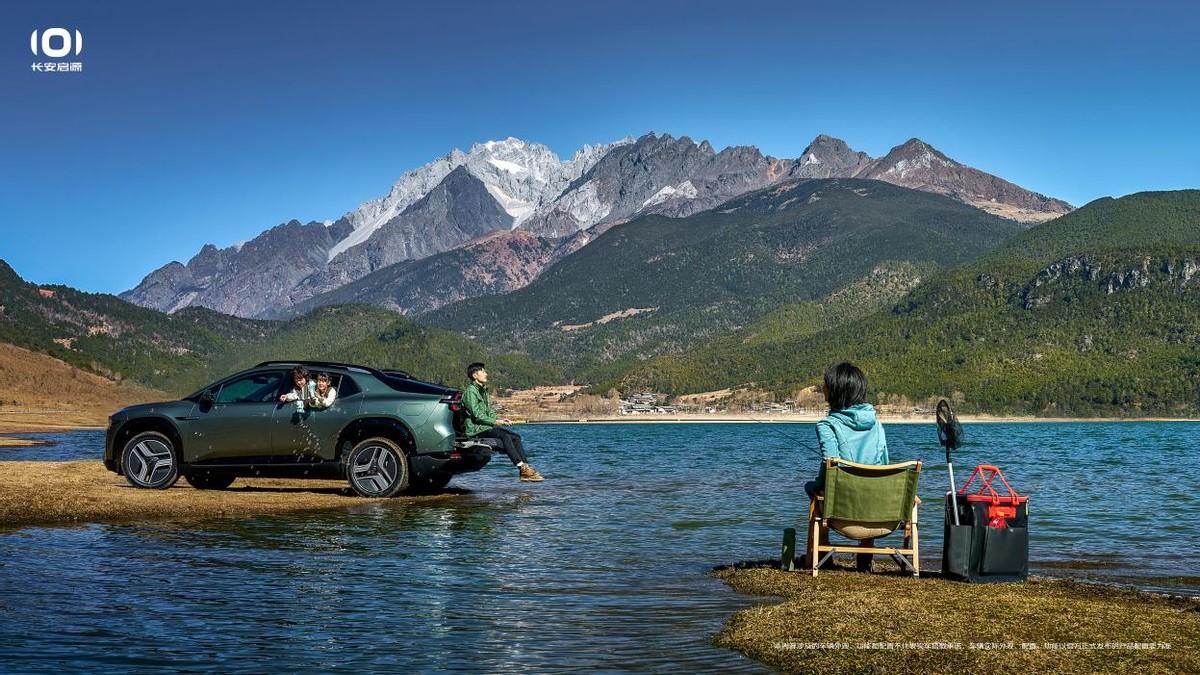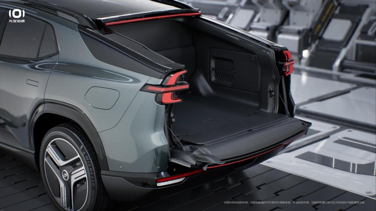 首先長安啟源E07是一臺新能源車,性能和用車成本都明顯優于傳統的燃油車,它的長寬高分別為5045/1996/1695mm,軸距為3120mm,雖然長安汽車給它定位的是中大型高端智能電動SUV,但是通過電動調節,它可以把后穹頂打開露出尾箱,變成了皮卡形態,你就能在上面設個茶桌喝喝茶,開到河邊釣釣魚。