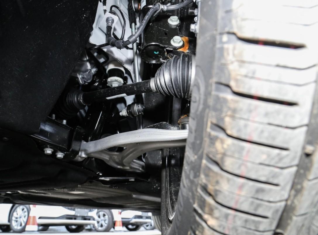 因此運(yùn)動(dòng)版采用了跨界造型,離地間隙更高,為了抬高車身,在鋁合金羊角部分,使用了大尺寸的設(shè)計(jì),布置懸掛的控制臂時(shí),可以向上移動(dòng),同時(shí)大面積的羊角可以讓控制臂分開(kāi)布置,簡(jiǎn)單來(lái)說(shuō)就是連接點(diǎn)更自由,輪胎上下運(yùn)動(dòng)更趨于垂直,時(shí)刻保持不錯(cuò)的抓地力。懸掛與車架通過(guò)四點(diǎn)式襯套連接,軟連接設(shè)計(jì)可以增加舒適度。