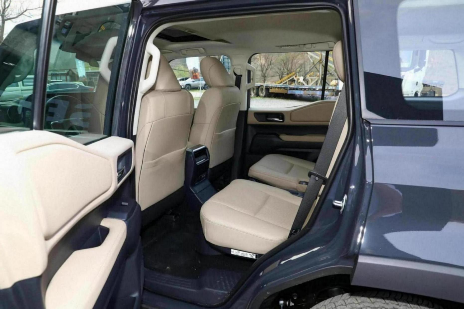 全新普拉多的內飾設計非常硬朗,座艙內采用硬朗的線條進行裝飾。中控臺采用雙色設計,形成強烈的視覺層次感。除了大屏幕外,中控臺還配有許多功能按鈕,操作便捷。車輛提供2+3和2+2+2兩種座椅布局選擇,座椅采用真皮材質,前排座椅支持加熱和通風功能。在空間方面,身高175厘米的乘客乘坐前排時,頭部空間寬敞,第二排座椅可前后調節,同時照顧到第三排乘客,非常實用。