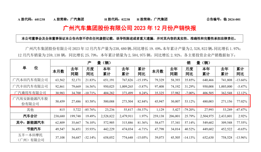 但是,到了2023年,廣汽埃安的年度銷量已經(jīng)達(dá)到了480003臺,接近50萬臺。