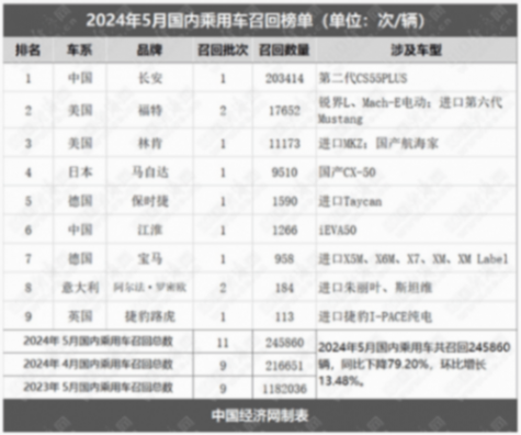 5月國內(nèi)汽車召回統(tǒng)計(jì)