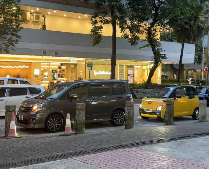 五菱這款電動小車非常適合香港狹窄的街道使用,從圖中我們看到,五菱mini的車身長度僅為前面的MPV車型的一半,停車什么的也非常方便,上街購物代步最合適不過了,難怪大明星也愛開。