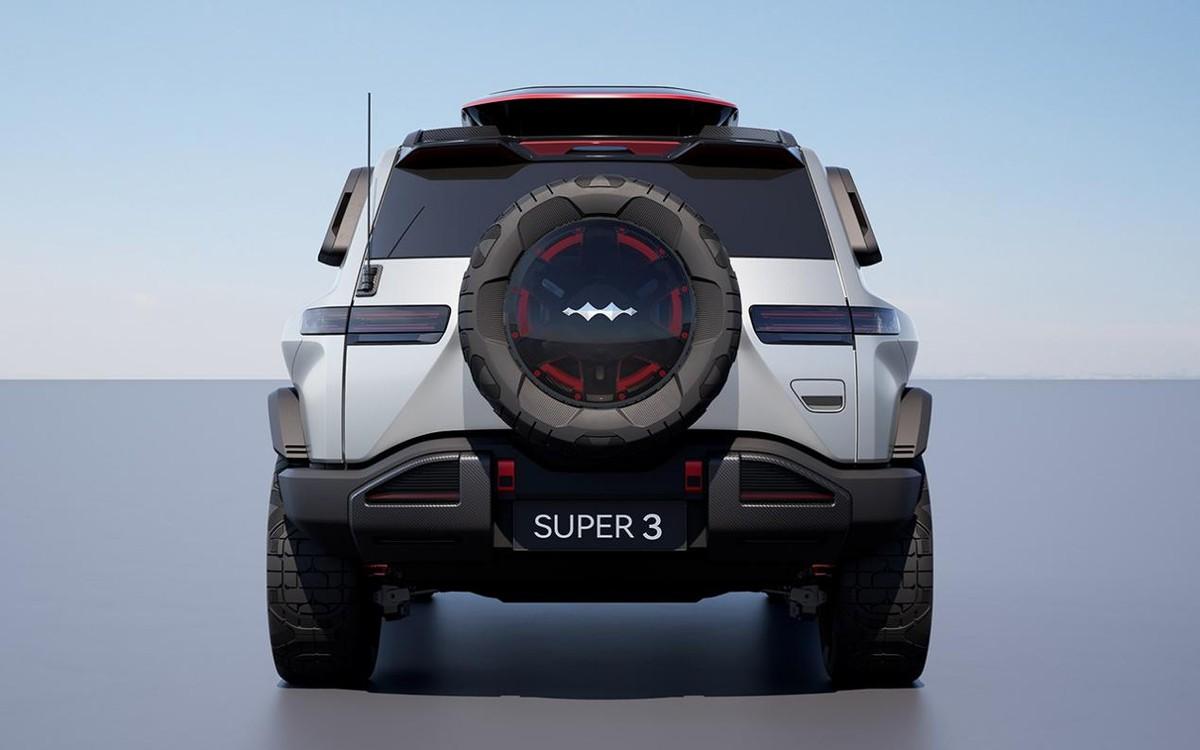 至于車尾,最吸引人矚目的無疑要屬外掛式的“小書包”備胎,對于那些愛好越野的人士來說,外掛式備胎顯然是不可或缺的,而這相信也會成為豹3的一個較大賣點。尾燈和前大燈一樣,同樣是幾何造型的樣式,整體辨識度也蠻高的。