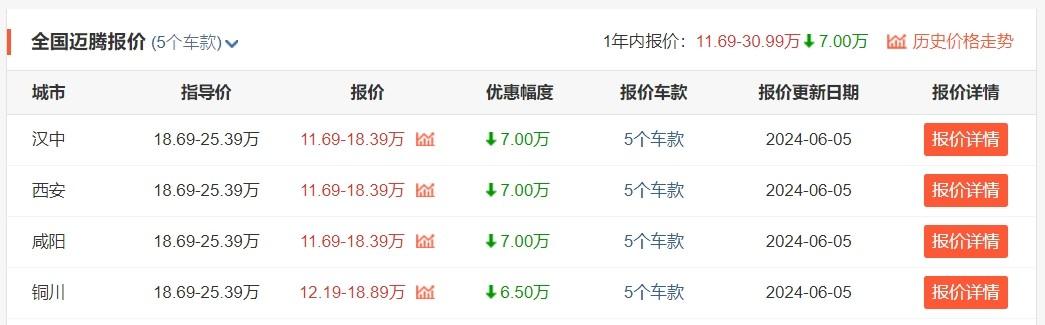 關注汽車市場的朋友就一定知道,大眾邁騰在6月將迎來全新車型的上市,那如此一來,老款大眾邁騰車系的優惠勢必也就會更大了。據我們所了解到的信息來看,邁騰目前在漢中等部分地區擁有全國最高的7萬元優惠,而且是全系車型都可享,那這對于目前急需要買車的消費者來說無疑是一個福音,咱們想買新款車型的朋友可以再緩緩了。