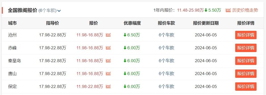 從我們所了解到的信息來看,燃油版雅閣目前在滄州、赤峰、秦皇島等地區都擁有6萬元以上的優惠,其中,滄州地區的雅閣最低配車型能優惠6萬,參考最低價來到了11.98萬元區間。