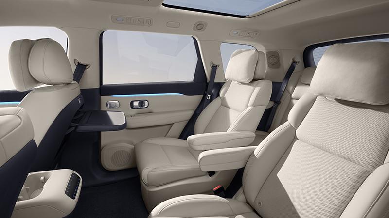 前排座椅標(biāo)配記憶及主駕迎賓功能,二排的獨(dú)立座椅也有加熱和通風(fēng)功能,并擁有最大145°躺姿。在副駕座椅靠背上海配備了小桌板,可通過語音指令“打開小桌板”,副駕及后排座椅會(huì)自動(dòng)調(diào)整位置、角度,確保桌板水平和前后距離適合用餐、辦公、寫作業(yè)等場(chǎng)景。