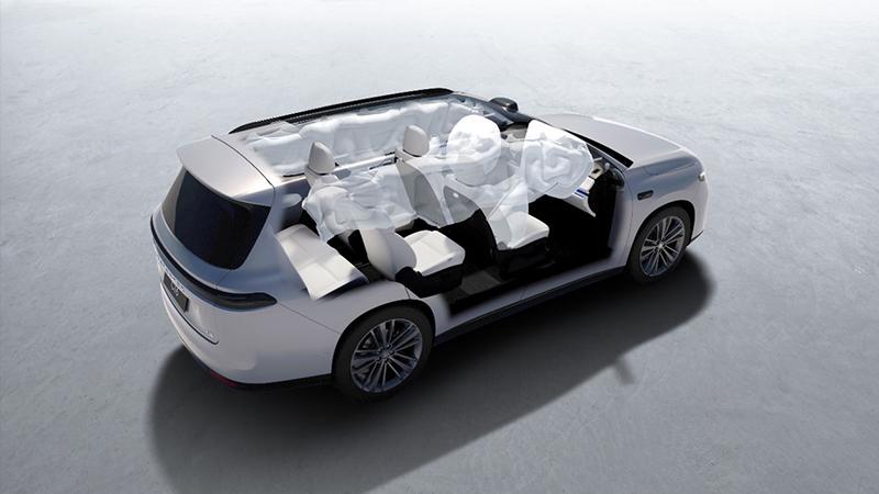 同時(shí)全車標(biāo)配6安全氣囊,并采用橫貫式側(cè)氣簾,單個(gè)氣簾體積高達(dá)46.5L充氣長(zhǎng)度23337mm,覆蓋面積9200平方厘米,充分保障1到3排乘客頭部安全,正面主駕氣囊60L,副駕氣囊105L,領(lǐng)先同級(jí)20%。