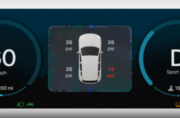 在該圖,CarPlay2.0通過讀取車輛傳感器的數(shù)據(jù),允許儀表盤中間集成顯示車輛胎壓。