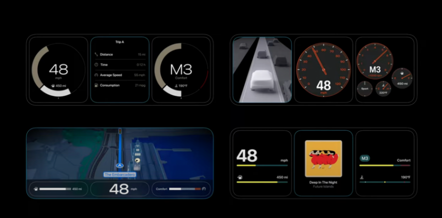 由于下一代CarPlay提供可自由定制服務(wù),果粉可以期望一下每個(gè)自己喜歡的汽車制造商將其獨(dú)特的風(fēng)格應(yīng)用于汽車中——無論是速度計(jì)還是儀表盤中央的動(dòng)態(tài)內(nèi)容區(qū)域。