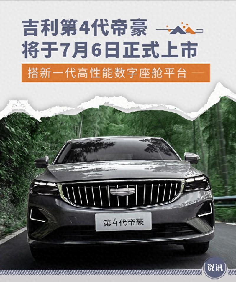 吉利第4代帝豪將于7月6日正式上市。新車采用了最新的家族式外觀設計語言,前臉大尺寸進氣格柵內部采用直瀑式造型,搭配兩側銳利的LED前燈組氣勢十足。與此同時,該車還將搭載新一代高性能數字座艙平臺,并采用1.5L發動機+CVT變速箱的動力組合。