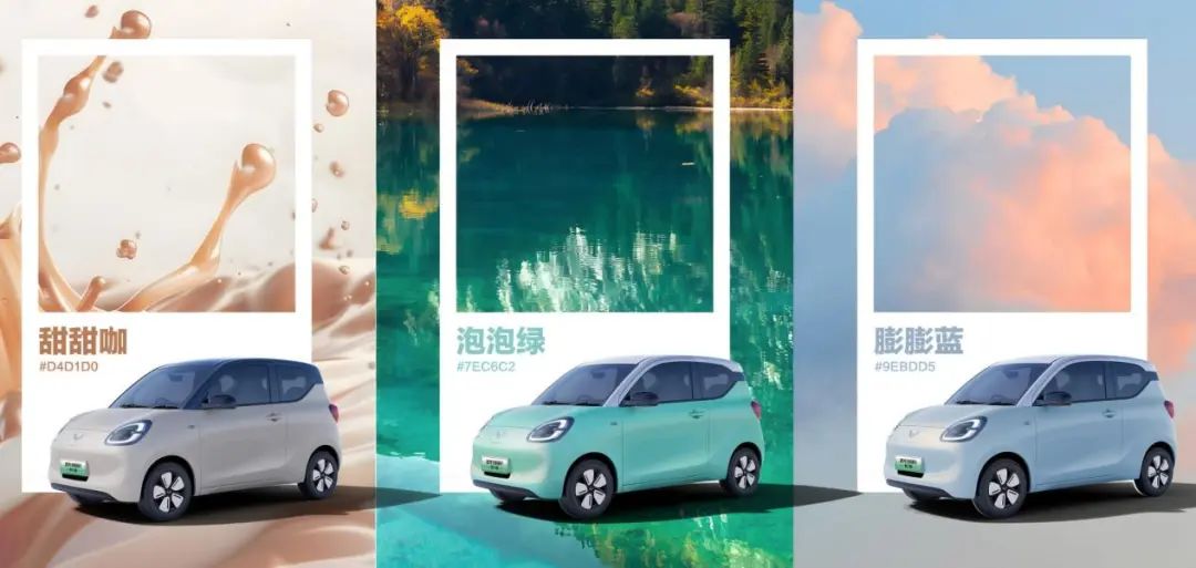 新車提供了甜甜咖、泡泡綠以及膨膨藍三種低飽和度車身顏色供選擇,配色不失時尚感。此外部分車型還提供了雙色車身,更具個性。新車將搭載五輻式13英寸輪轂,寬條輻的設計,能有助降低風阻。