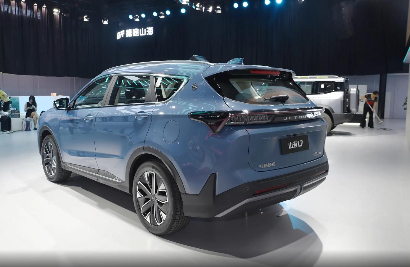 當然車身側面和尾部就差異比較大了,車身側面能明顯感覺到一些熟悉的影子,這款插電混動車型明顯繼承了之前捷途X系列的主體白車身設計元素,還是典型的前傾腰線,而且并沒有采用隱藏門把手,當然尾部也是之前捷途X系列比較經典的貫穿燈光效果。