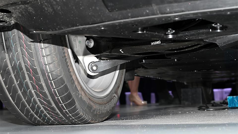 至于電驅(qū)總成,不出意外還是會(huì)繼續(xù)用和小米SU7同源的TZ220XS系列,200kW起步,無疑是典型的大馬力電機(jī)思路,所以兩家日系車企聯(lián)盟后的純電產(chǎn)物,會(huì)繼續(xù)拿本田現(xiàn)有的e Architecture W平臺(tái)來做,而這套平臺(tái)本就支持高性能電驅(qū)、大容量高密度電池、純電專屬車架,所以肯定會(huì)選擇大馬力電機(jī)+大電池方案,高倍率快充自然也會(huì)出現(xiàn),而這樣也就是現(xiàn)在本田在國(guó)內(nèi)推出的新品牌燁,單電機(jī)后驅(qū),雙電機(jī)四驅(qū),所以不排除未來會(huì)以單電機(jī)做極致性價(jià)比產(chǎn)品,重點(diǎn)其實(shí)在雙電機(jī)四驅(qū)上,該如何理解呢?在底盤硬件配置上,這套平臺(tái)直接就給到了前雙叉臂+后五連桿,這兩套懸架的特點(diǎn)大家已經(jīng)非常熟悉了,也是目前新能源汽車應(yīng)用較多的懸架類型,舒適性或針對(duì)操控性的調(diào)教上限更高,1.2萬(wàn)噸一體化壓鑄,在減少焊點(diǎn)的同時(shí),強(qiáng)化了車身扭轉(zhuǎn)強(qiáng)度,當(dāng)然了,這也是降本的措施之一,所以復(fù)盤下來,可以看到的是有高鋼性、低重心、輕量化、馬大力以及能夠應(yīng)對(duì)橫縱應(yīng)力的懸架,這明顯就是沖著駕駛樂趣來的。