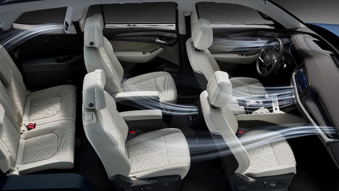 從6座版車型的座椅配置來看,上汽奧迪Q6可以說做到了天花板。首先中排座椅電動調節/加熱/通風/按摩全系標配,或許在上汽奧迪看來,既然選擇做6座車型,那就應當一視同仁,為全系產品都提供頭等艙般的體驗,座椅舒適度絕不應該成為區分6座車高低配的手段。
