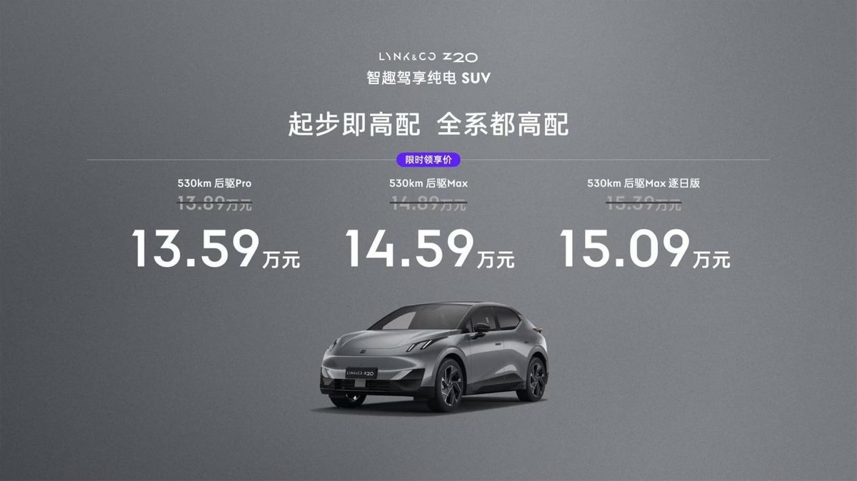 12月22日,領克首款純電SUV領克Z20正式上市,新車共推出三款車型,限時領享價為13.59萬~15.09萬元。面對日趨競爭激烈的同級市場,Z20則更強調顏值設計、車機系統體驗以及性能操控層面,也更聚焦年輕市場。同時,新車還推出了多重購車權益,可享受價值至高超1.8萬元的限時購車權益。