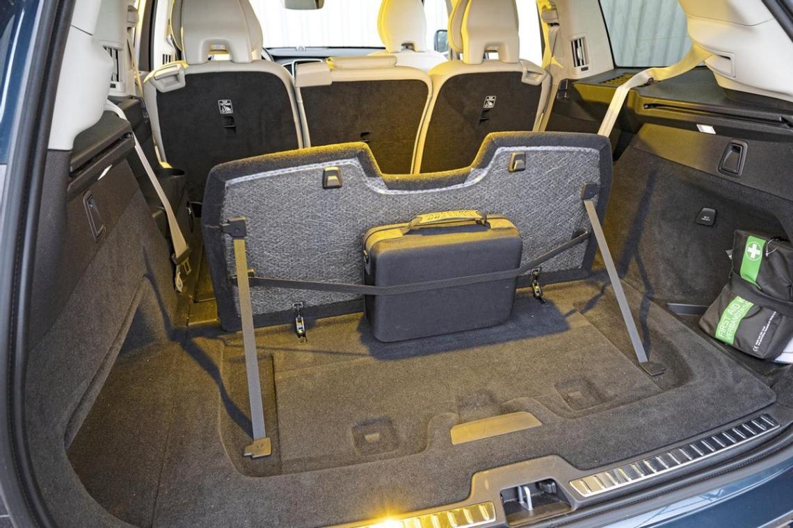 在640升的行李廂中,可伸縮的行李支架使得空間整齊有序。還不夠?那么只需將后排座椅的三個靠背折疊起來,此時這個如同體育館般的空間最大可容納1816升行李。不過,XC90總載重量只有562千克。當電動拖車掛鉤伸出時,沃爾沃的牽引質量最多為2400千克。而BMW X5擁有2.7噸,保時捷和大眾汽車甚至可以牽引3.5噸的拖車。