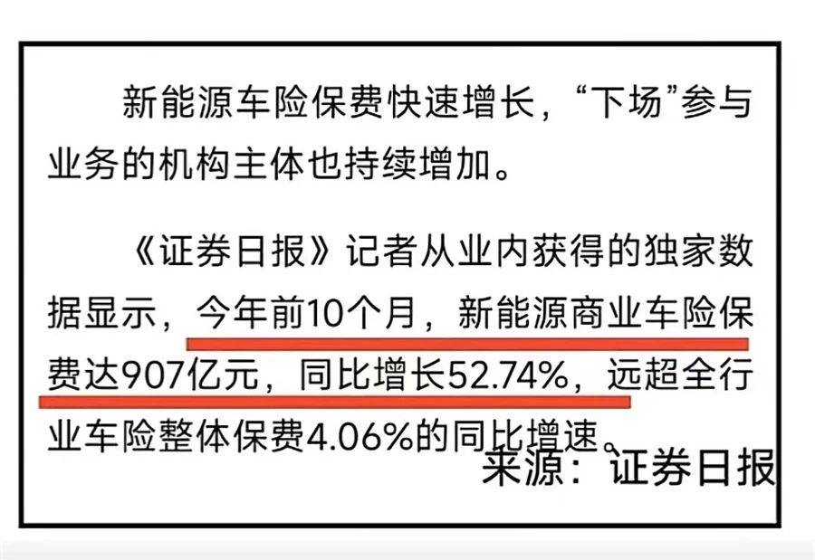 去年前10個月,新能源商業車保費暴漲了50.7%,而同期新能源汽車銷量只漲了33.9%,所以新能源車上保越來越貴。如果和燃油車的保費相比,新能源車的平均保費還要高出約21%,而保險公司還覺得自己虧大了。