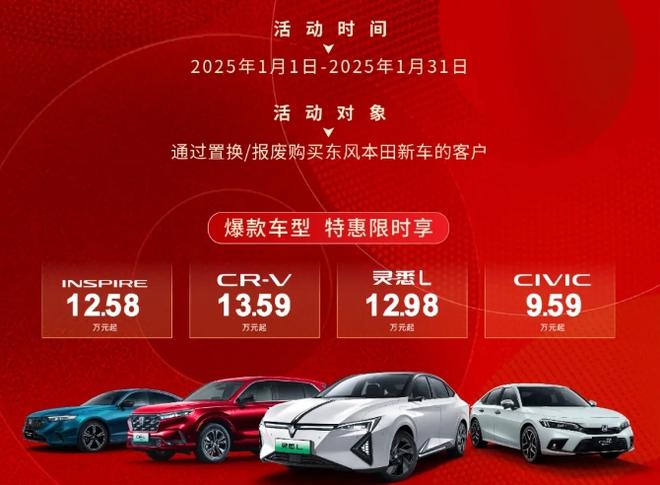 廣汽本田:1月購買廣汽本田多款熱銷車型享多重限時權(quán)益,置換購車享至高1萬元廠家補(bǔ)貼+國地補(bǔ)貼雙兜底政策;金融購車享至高5年10萬0息,更有至高6,000元保險補(bǔ)貼。