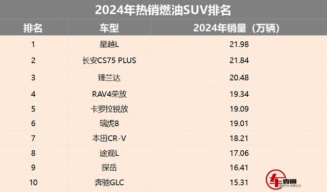 進入1月,很多品牌都相繼公布了年銷成績,從各家總數(shù)據(jù)來看,不太能反映出來具體車型的銷量情況。為了讓大家購車有所參考,今天《車壹圈》就為大家整理了2024年銷量最高的10款燃油SUV,涵蓋了市場熱門的自主與合資車型,并且每款車都有鮮明的亮點。下面,就與圈哥一起來了解下吧。