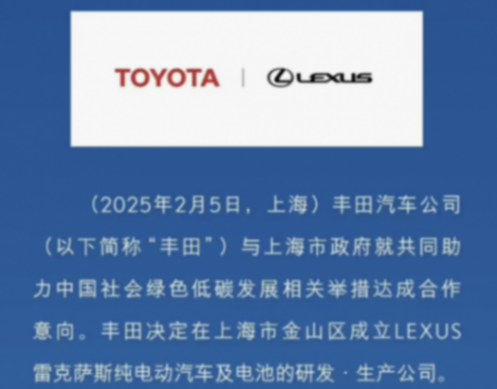 近日,根據我們的最新了解,豐田中國正式官宣表示,雷克薩斯汽車將會在上海設立電動汽車和電池研發、生產公司,并且是由豐田獨資的外資企業,類似于特斯拉中國。