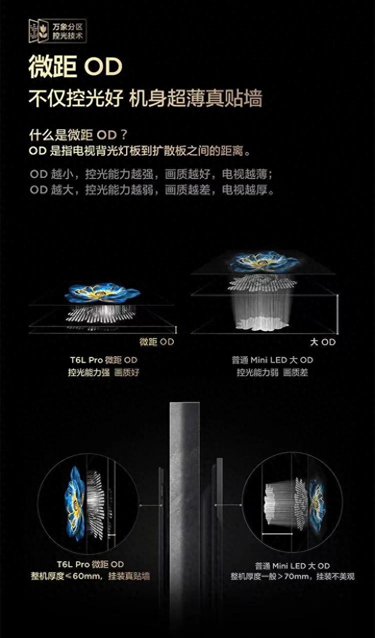 TCL T6L Pro 搭載的蝶翼星曜屏,是其在屏幕技術(shù)上的創(chuàng)新成果。高對比度是 Mini LED 技術(shù)的核心競爭力之一,而蝶翼星曜屏通過優(yōu)化屏幕結(jié)構(gòu)和材料,進一步提升了對比度。