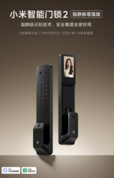 小米智能門鎖 2 指靜脈增強版上架:配 AI 貓眼、可視大屏等,1699 元