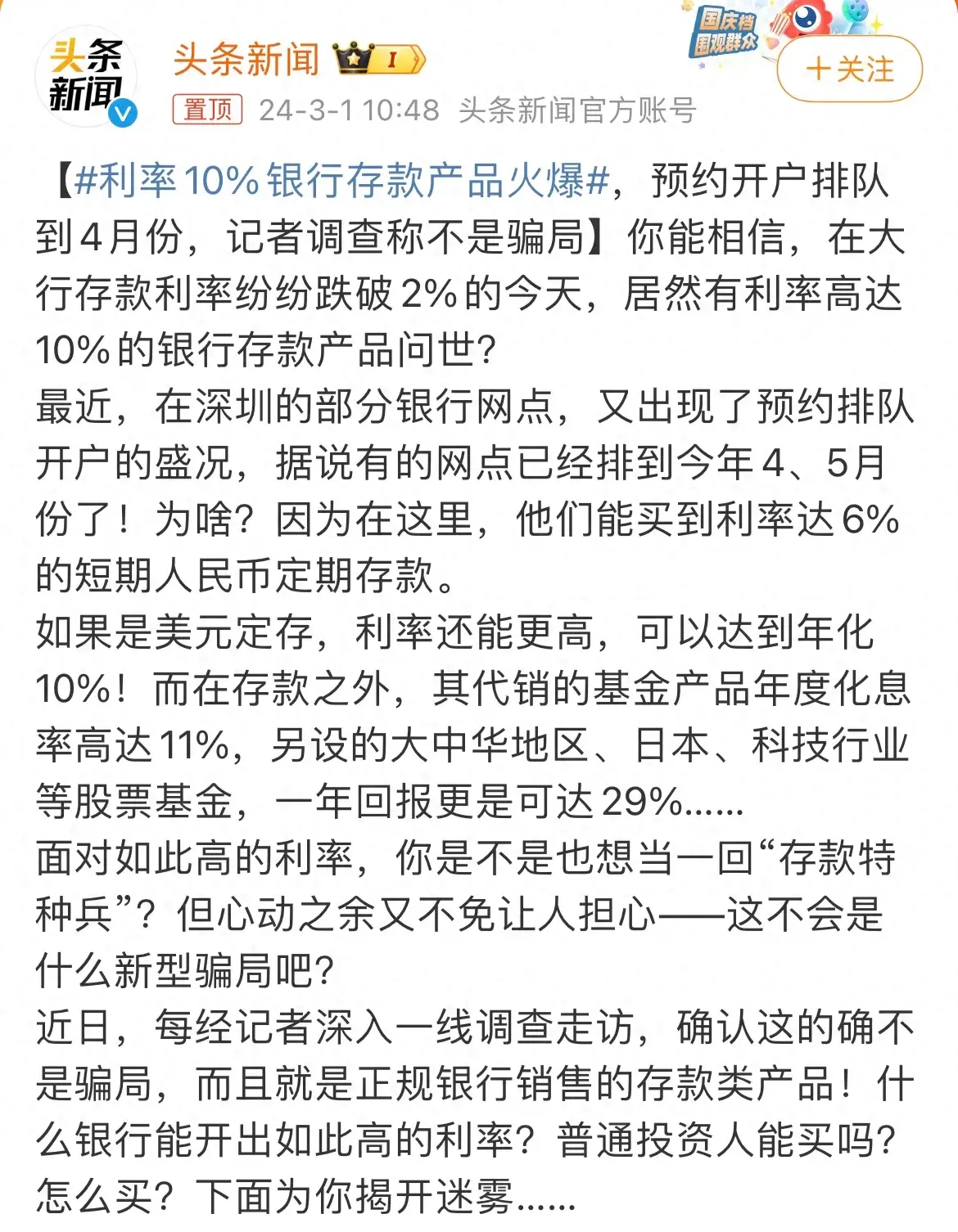 在大行存款利率紛紛跌破2%的今天,居然有利率高達(dá)10%的銀行存款產(chǎn)品問(wèn)世?