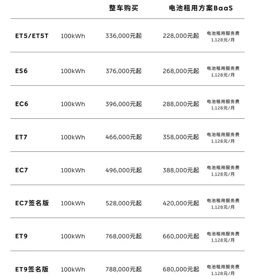 宣布調(diào)整100kWh長(zhǎng)續(xù)航電池包(包含400V、900V平臺(tái))價(jià)格。即日起,蔚來品牌100kWh長(zhǎng)續(xù)航電池包價(jià)格從12.8萬元下調(diào)至10.8萬元,電池租用服務(wù)費(fèi)統(tǒng)一為每月1,128元不變。同時(shí),電池永久升級(jí)定價(jià)由5.8萬元下調(diào)至3.8萬元,電池靈活升級(jí)定價(jià)不變。
