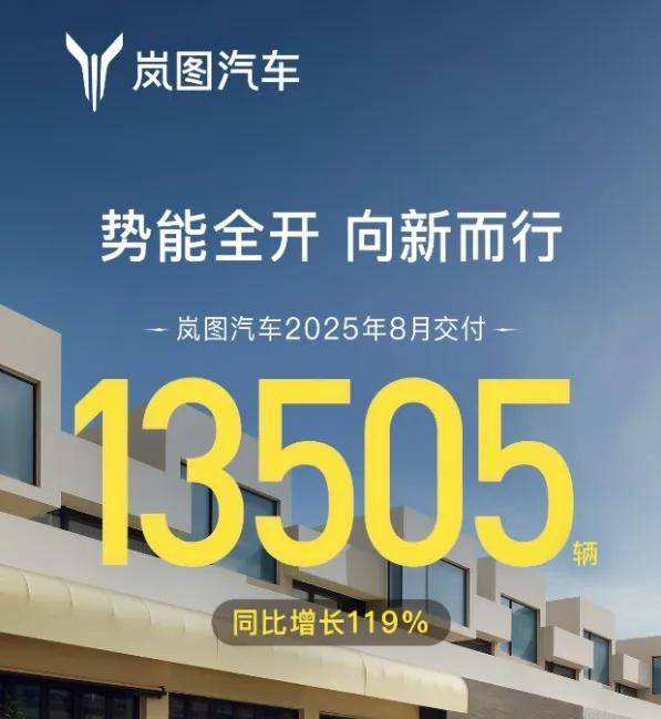 剛過去的8月,嵐圖汽車交出了一份亮眼的成績單。單月交付量達到13505輛,同比足足漲了119%。更厲害的是,它已經連續6個月銷量破萬,還實現了六連漲。這一成績不僅印證了市場對嵐圖產品價值的認可,更強化了嵐圖品牌在高端新能源市場的地位。