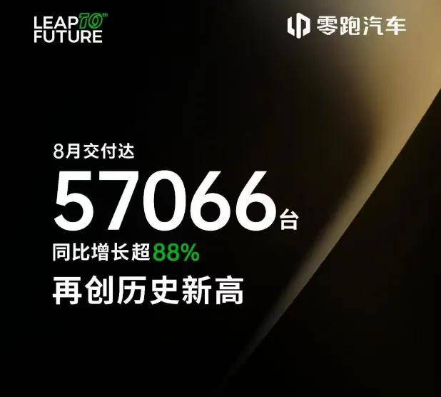 在造車新勢力品牌當中,零跑汽車無疑是本月最耀眼的明星,單月交付再次突破5萬輛大關,達到57066輛,同比激增88%。更令人驚嘆的是其1到8月累計近23萬輛,這種在競爭白熱化當下的爆發力堪稱現象級。