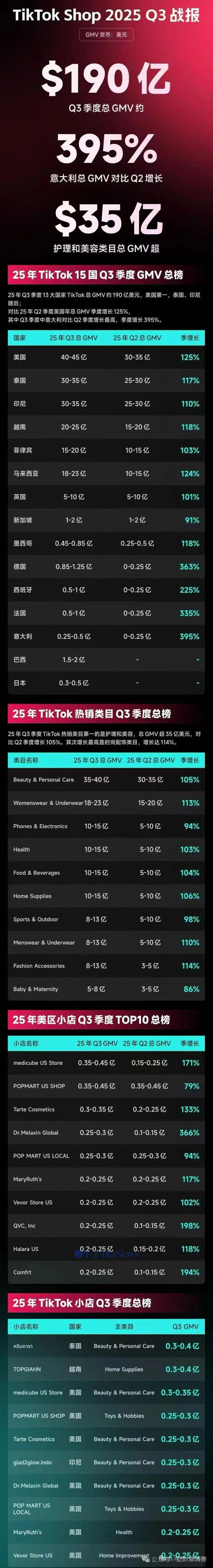 10月13日消息,TikTok Shop今年第三季度戰報顯示,GMV約190億美元。