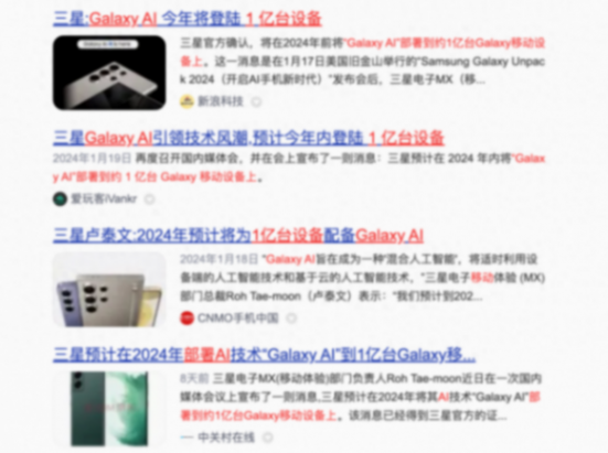 而隨著新一代設備和技術的發布,多份報道也顯示,三星將在 2024 年內將 Galaxy AI 部署到約 1 億臺 Galaxy 移動設備上。
