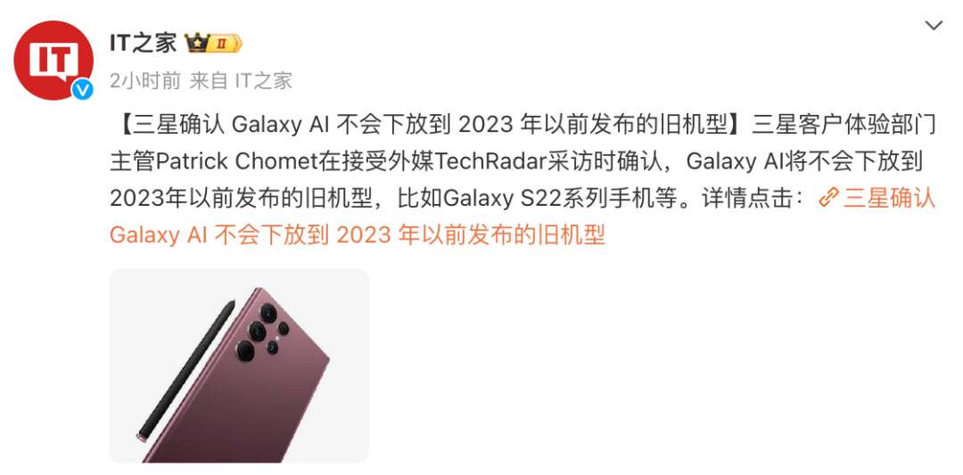 至于更早之前的設備能否進行這一升級,最近的消息確認,2023年之前的設備并不會支持Galaxy AI功能。