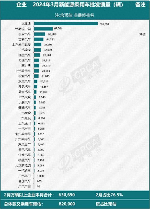爭奪新能源車市,競爭殘酷又激烈,有人迎來高光時刻,有人被慘淡淘汰出局。在市場面前,有銷量才能有更大的發展空間。3月份,鬼哥在“崔東樹”公眾號上看到乘聯會發布的2024年3月新能源乘用車廠商批發銷量信息。
