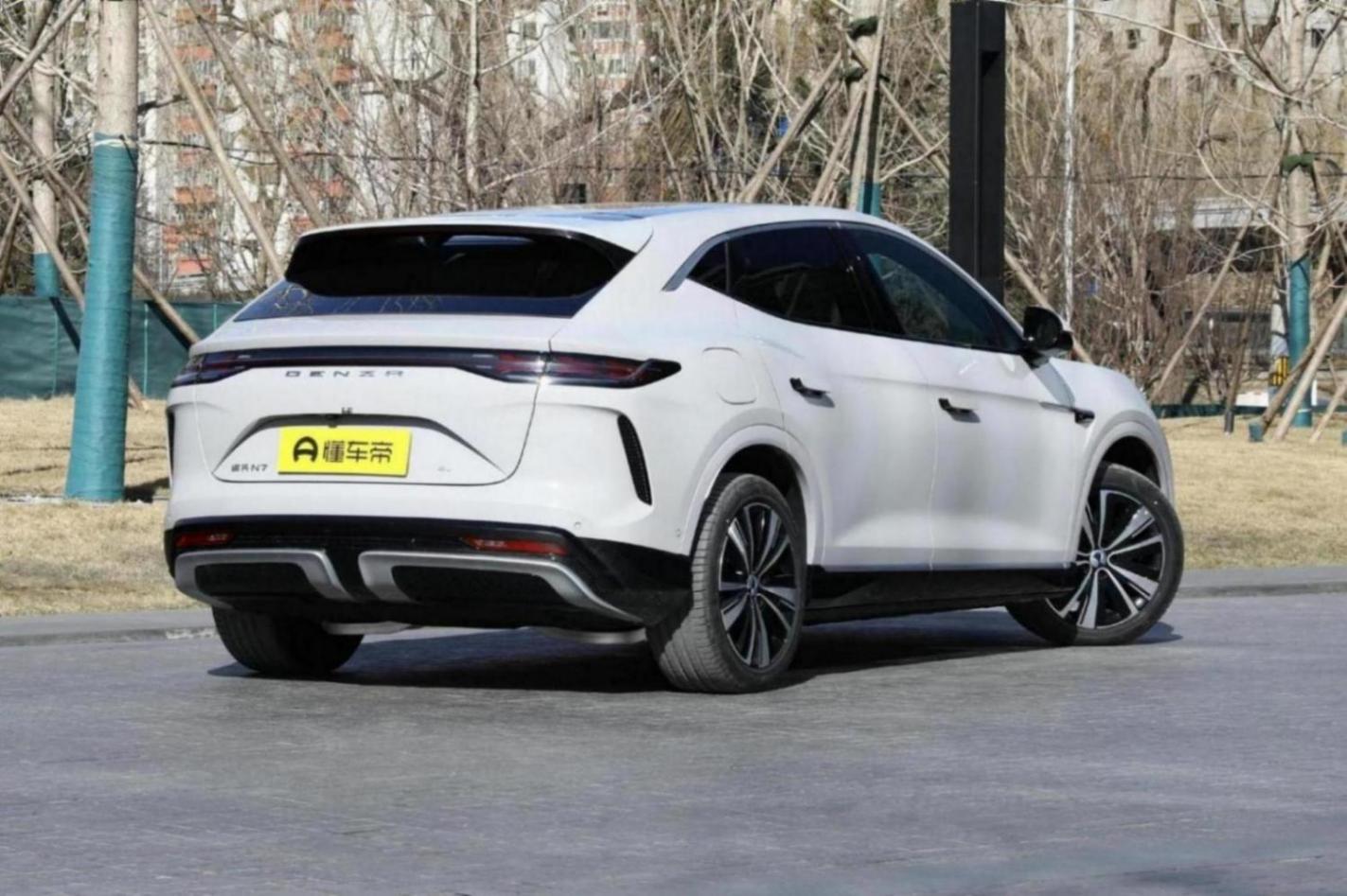 新車的側面和車尾整體風格變化不大,尤其是車尾看上去還是很有保時捷的即視感。輪轂尺寸提供了19英寸和20英寸兩種可選,值得一提的是,新款騰勢N7采用了懸浮式的輪轂標,車輛在行駛的時候,中間的logo保持不動,和勞斯萊斯的車型是一樣的設計。